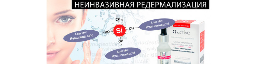 Регенерирующие концентраты ORGANIC SILICIUM COMPLEX с уникальной молекулой, в которой гиалуроновая кислота находится в плотной связке с органическим кремнием и может использоваться для безинъекционного восстановления кожи.